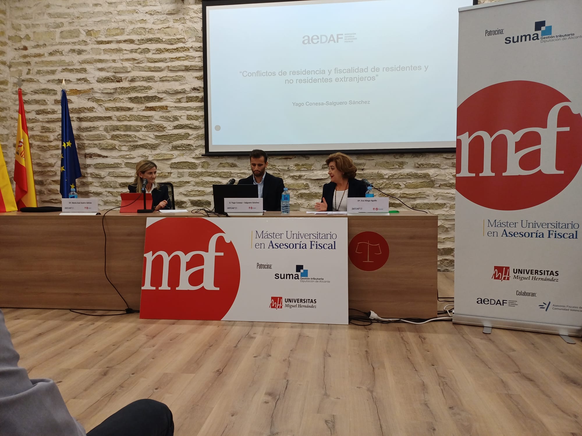 Ayer se celebró en la Universidad Miguel Hernández de Elche, la jornada «Conflictos de residencia y fiscalidad de residentes y no residentes extranjeros», organizada conjuntamente por la Delegación Territorial de Alicante-Albacete de la AEDAF | Asociación Española de Asesores Fiscales y el Máster Universitario en Asesoría Fiscal.